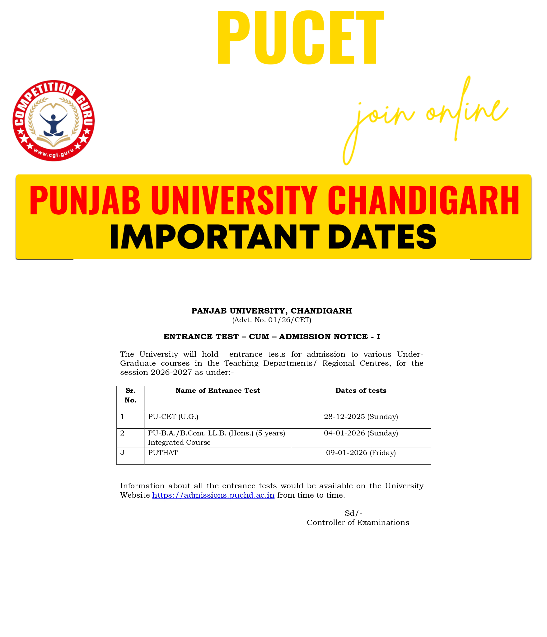 PUCET UG Classroom and Online Coaching with Competition Guru Chandigarh- PUCET UG, B.A, B.Com, PU LLB , B.ed exam Preparation